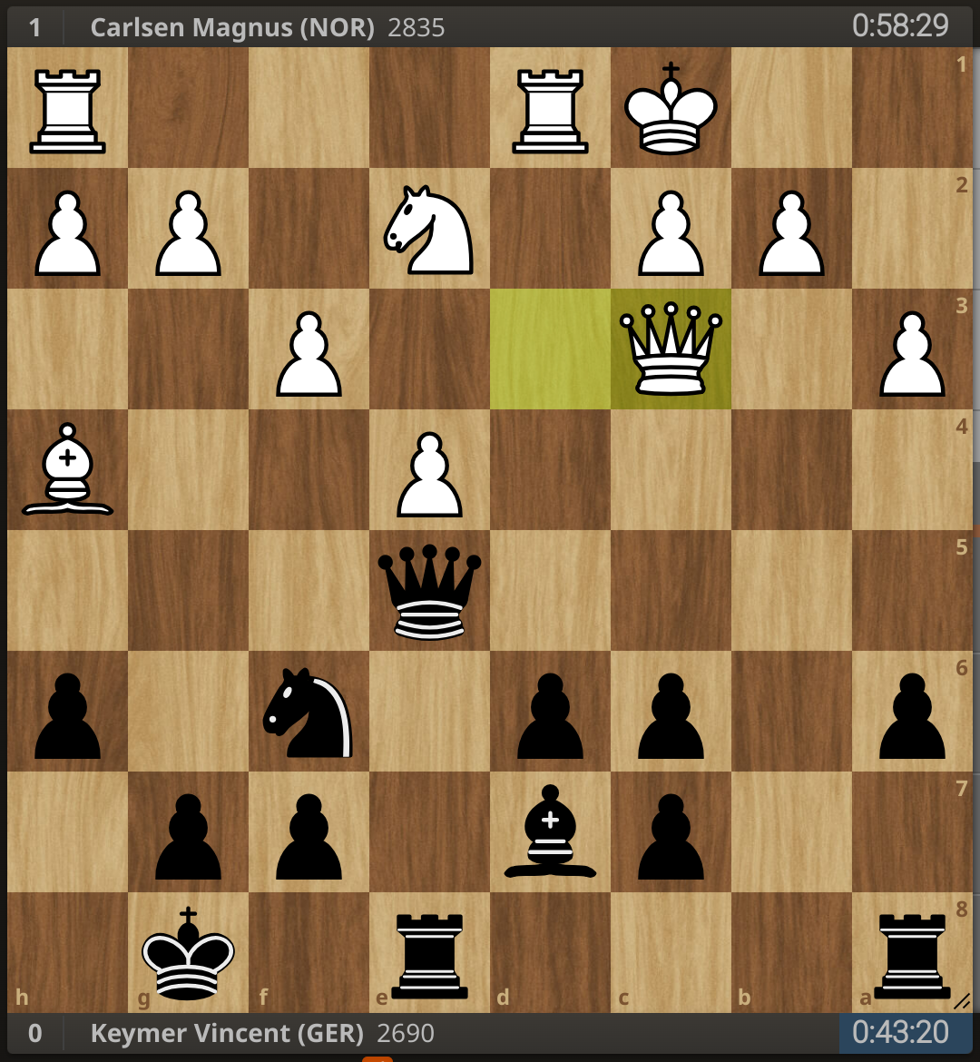 During their WC match two weeks ago, Vincent Keymer missed a very subtle tactic that would have given him a clear advantage over Magnus Carlsen in their second game, and would have probably left Carlsen out of the tournament (Keymer eventually lost the game, the match, and Carlsen went to win the tournament). Can you spot it? Black to move. #chesstodon