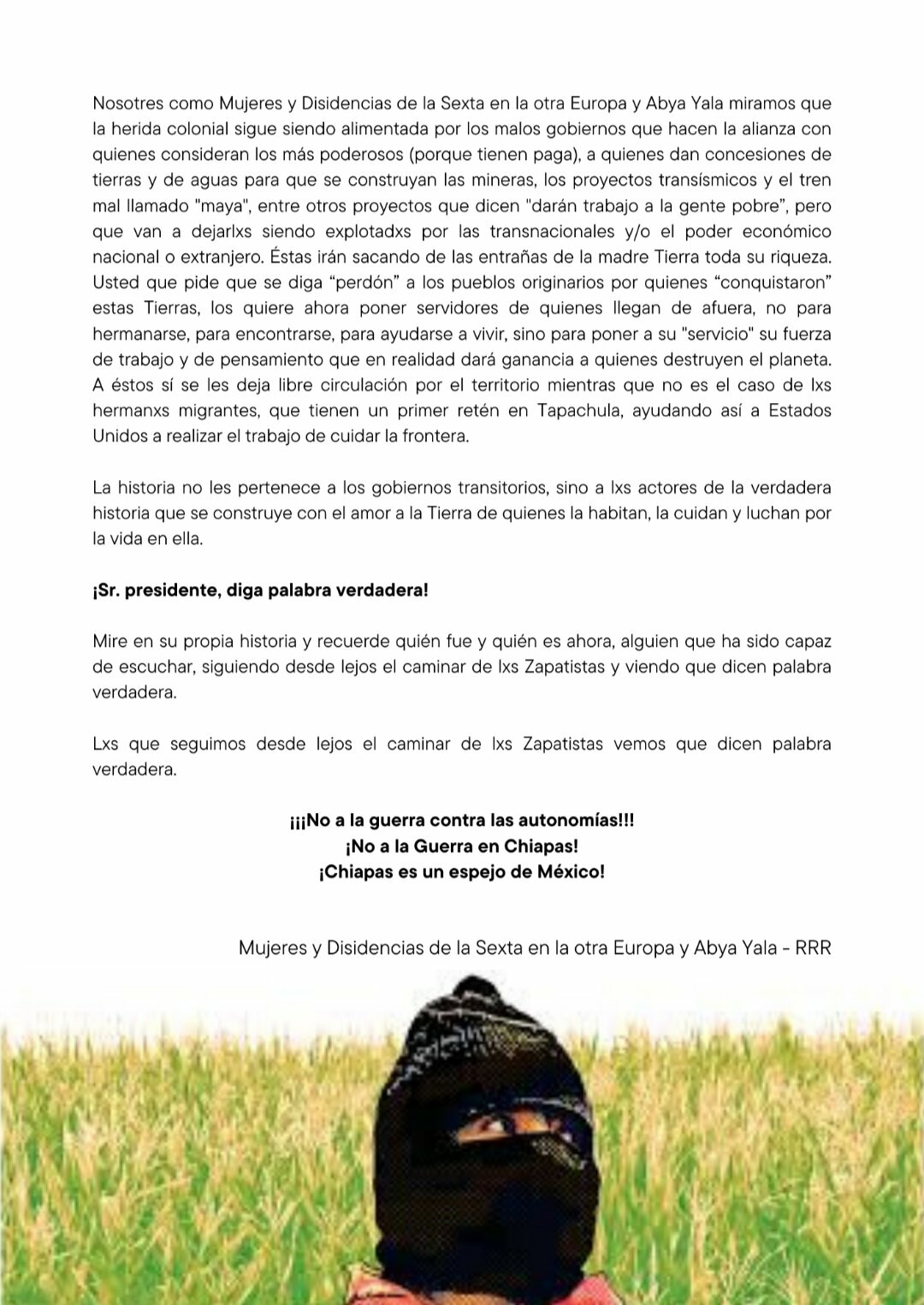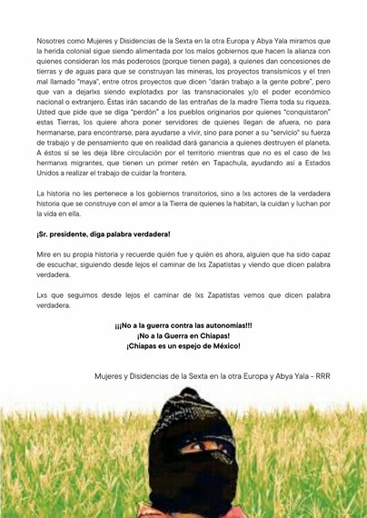 Carta - Mujeres y Disidencias de la Sexta en la Otra