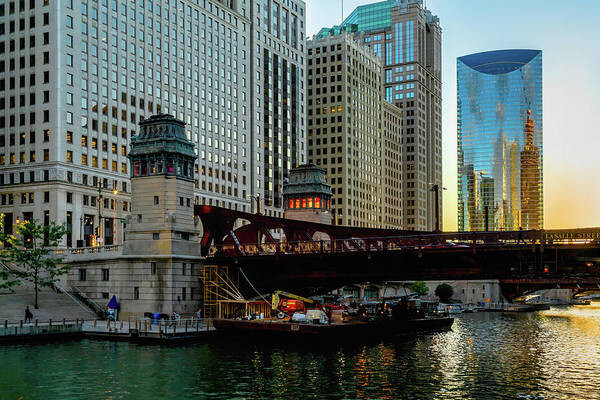 La Salle Street Bridge in Chicago, IL. Taken from the river, during a sunset cruise. Chicago Architecture is beautiful and it's worth visiting just to see it! Take one of the architecture tours. #TravelPhotography #ChicagoPics #BridgesOfChicago #LaSalleStreet #AYearForArt #SpringIntoArt