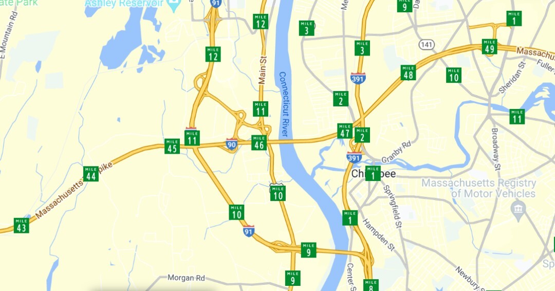 Begining today 4/12 in #Chicopee lane restrictions for bridge deck and joint repairs on the bridge that carries I-90 EB and WB over the Connecticut River from MM 47.2 to MM 46.1. Work is expected to continue daily through the end of June.
