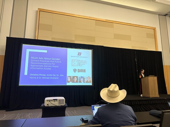 Christine is presenting our paper at #CHIIR2023, with Amifa and @alex. Looking forward to the discussion! https://md.ekstrandom.net/pubs/chiir-gender