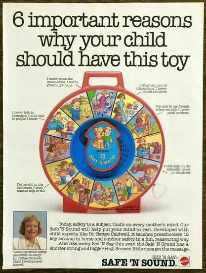 1986 Christmas advertisement for Mattel See 'N Say Safe 'N Sound Learning Toy.