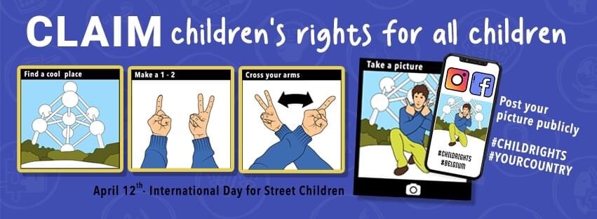 Help je mee 12 april als Internationale dag voor het straatkind onder de aandacht brengen? De vrijwilligers van Mobile School doen een online challenge en proberen uit 169 landen een #childright foto met ons 12 april teken (1 en 2 met gekruisde armen die ook de romeinse IV vormen) krijgen. Posten jullie ook een foto publiek op social media aub?