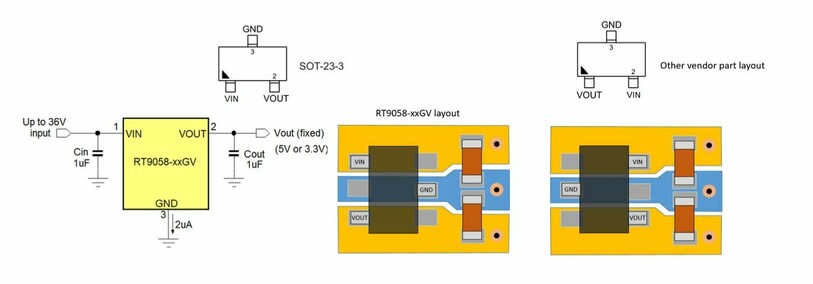 Using a standard footprint for your LDOs like SOT23 is already a good choice, but you can go a step further and create a fotprint that accommodates both pinout versions :D .