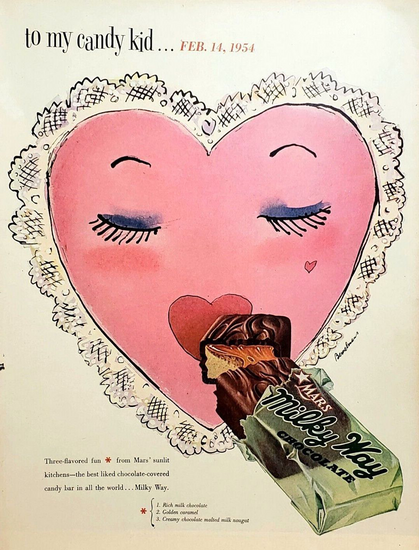 #MilkyWay #Chocolate #ChocolateBar #Advertisement #Valentine’sDay #Hearts #Ephemera #Retro #Vintage #Candy
