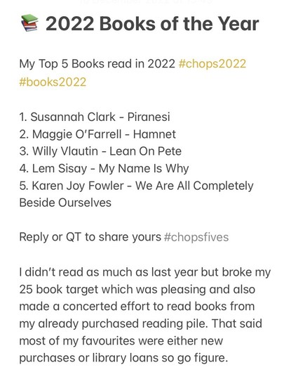My Top 5 Books read in 2022 #chops2022 #books2022