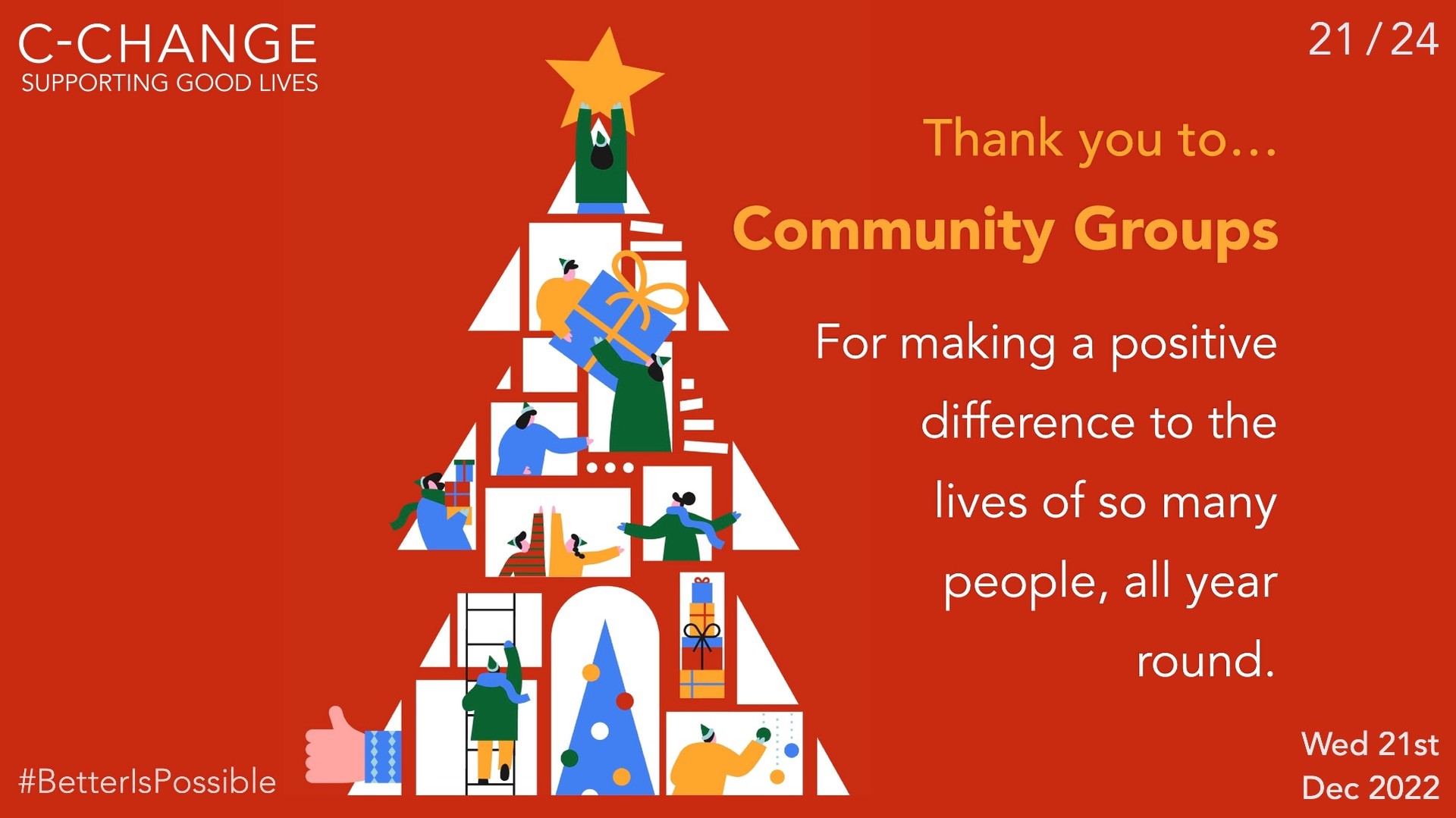 #BetterIsPossible #community #CommunityGroups #communityorgs #communities #thankyou #christmasadvent #xmas2022