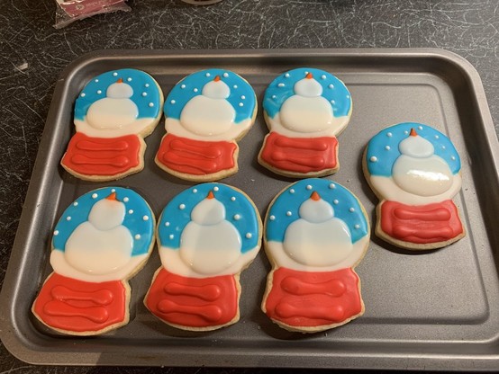 The hubby and I decorated the sugar cookies we made yesterday! They came out Meh, but they taste delicious.