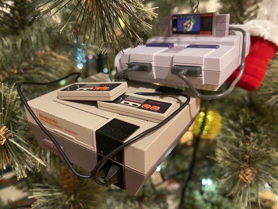 My wife kind of hates these because of the sound, but my kids and I love them. #retrogaming #Christmas #nes #snes #christmasornament