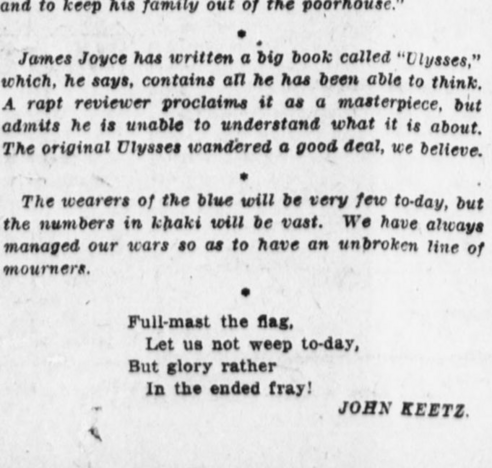 Source: https://chroniclingamerica.loc.gov/lccn/sn83030193/1922-05-30/ed-1/seq-12/ #JamesJoyce #Ulysses #ChronAm