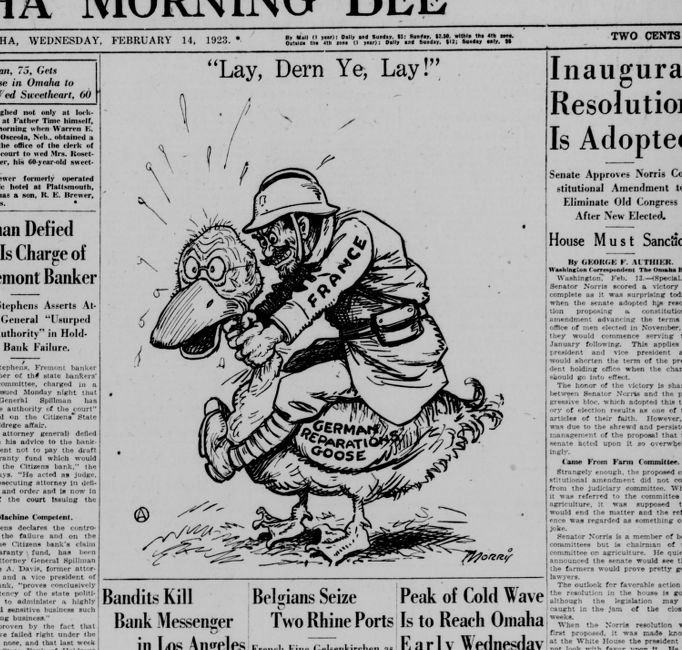 100 years ago today - France collecting war reparations from Germany was all the news (as we see from this American newspaper cartoon)