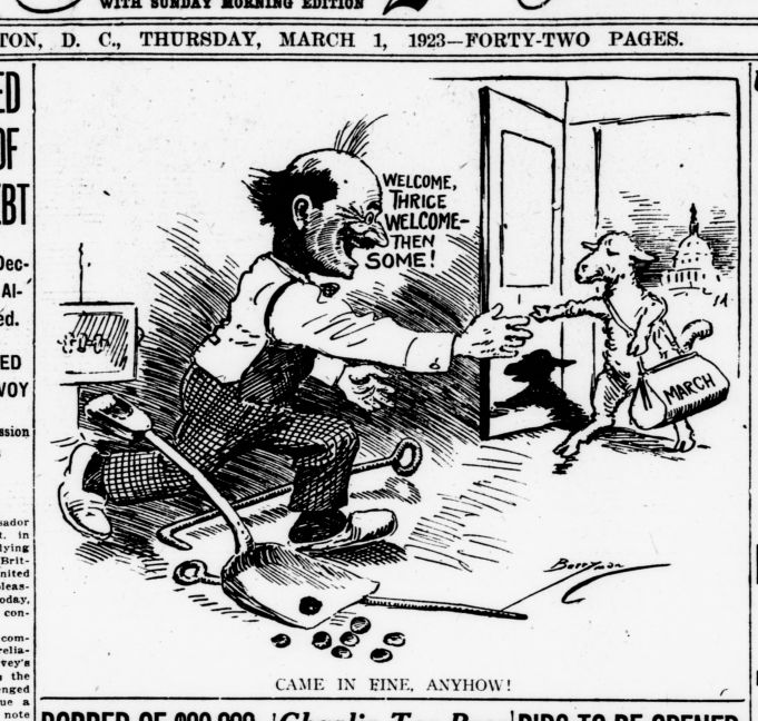It's the first day of March so this American newspaper cartoon from 100 years ago today is very apt!