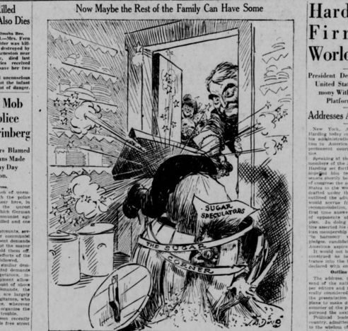 This cartoon is from an American newspaper #OTD 1923. Sugar speculation seems to have been a real thing then as the subject featured in several newspaper cartoons around the time...