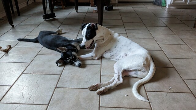 I asked them what I should do & they told me I could come back tomorrow (today) to do an intake. I inspected her for fleas or any other noticable neglegencies but saw none, thankfully. So I brought her home until I could decide what to do. Her & my own #dog hit it off quickly.