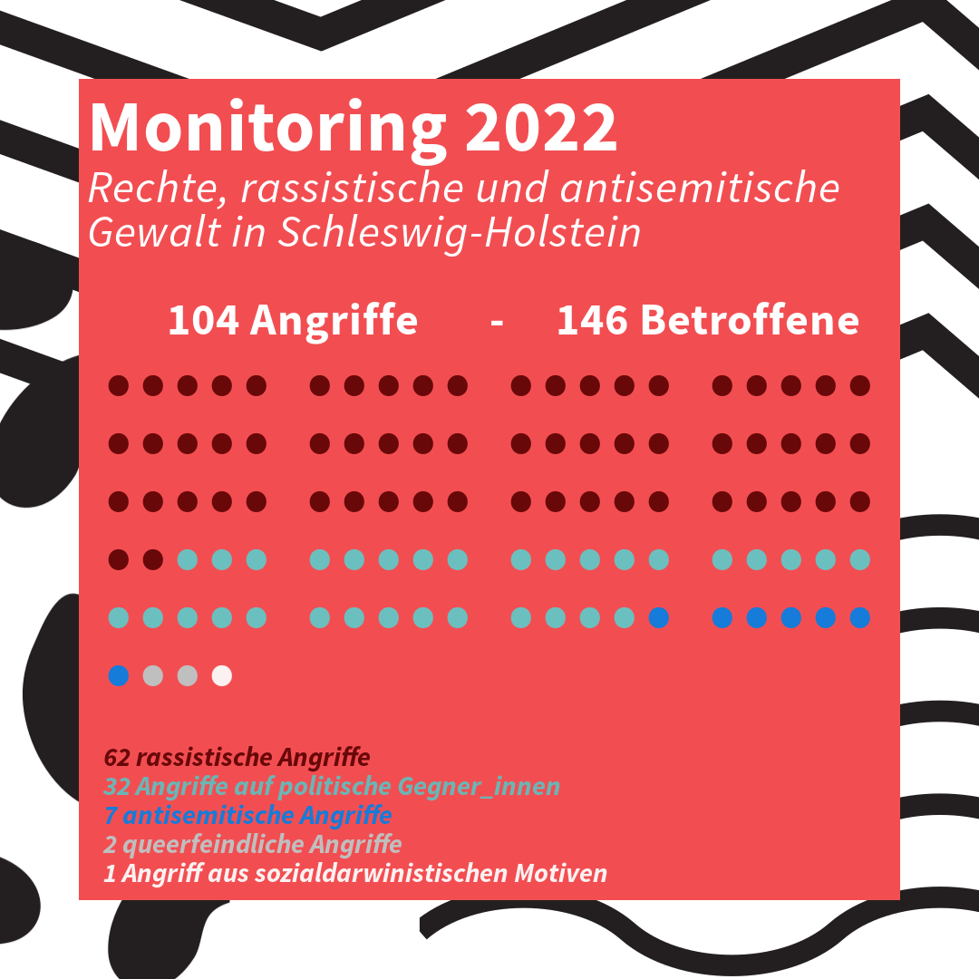 Wir veröffentlichen heute unser #Monitoring zu rechter Gewalt in #SchleswigHolstein für das Jahr 2022. Fast jeden dritten Tag wurden im vergangenen Jahr Menschen aus rassistischen, antisemitischen oder anderen rechten Motiven angegriffen. #ChronikSH
