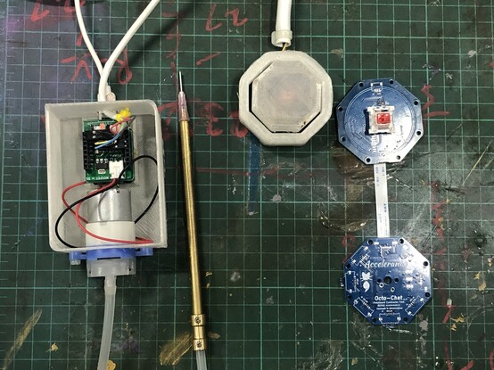 Here’s a #CircuitOfTheDay two for one. Herr my “cat squirter” pump module (originally for, well….) runs a vacuum pump for SMD assembly. The pump is triggered by an “Octo-Chat” foot switch. This gives me foot activated vacuum pick-up tool with interchangeable tips.