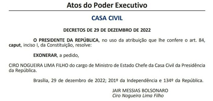 #CiroNogueira #Exoneracao #Bolsonaro #CasaCivil #PoderExecutivo #PresidenciaRepublica