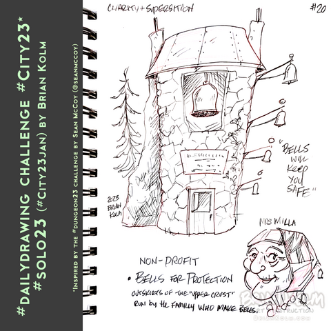 This week the #city23 worldbuilding #drawing prompt: Jan 15-21 Power and Privilege, charity + superstition