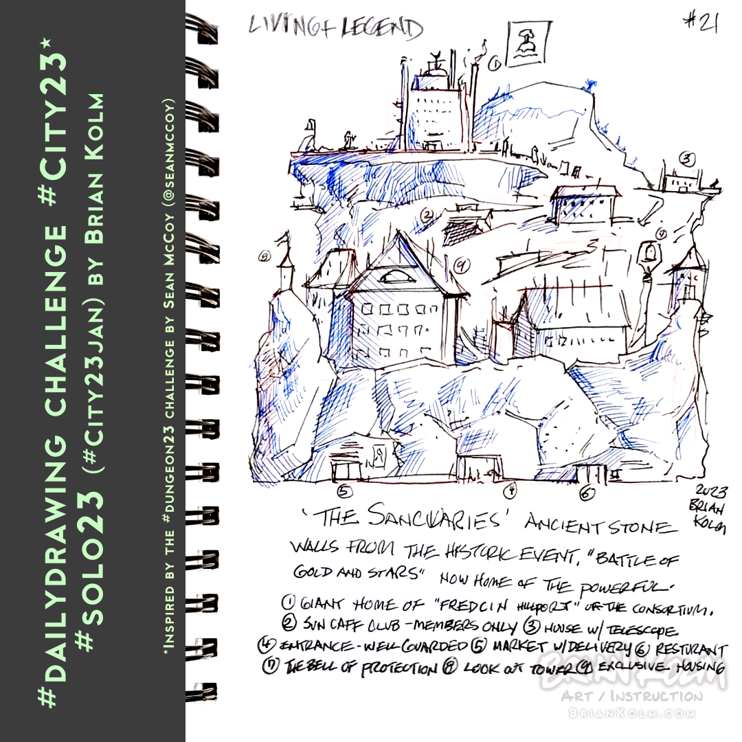 This week the #city23 worldbuilding #drawing prompt: Jan 15-21 Power and Privilege, living + legend