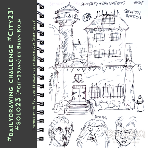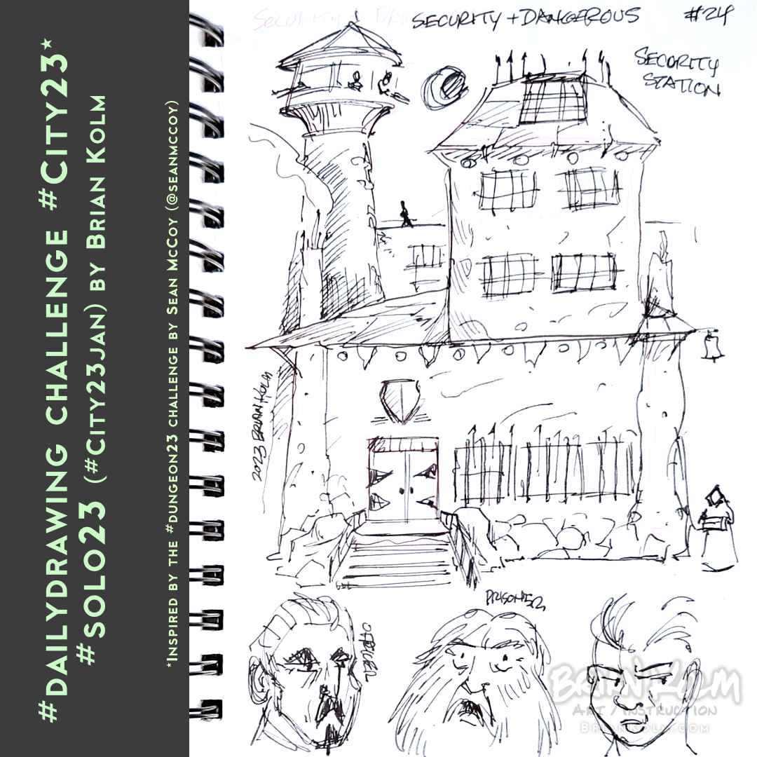 This week the #city23 worldbuilding #drawing prompt: Jan 22-28 Everyday - security + dangerous