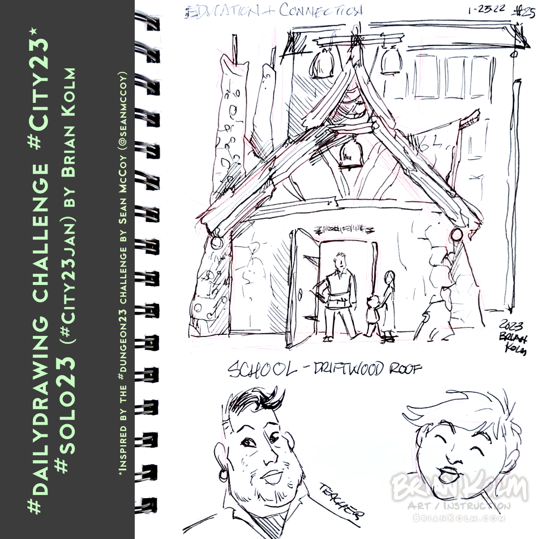 This week the #city23 worldbuilding #drawing prompt: Jan 22-28 Everyday - education + connection