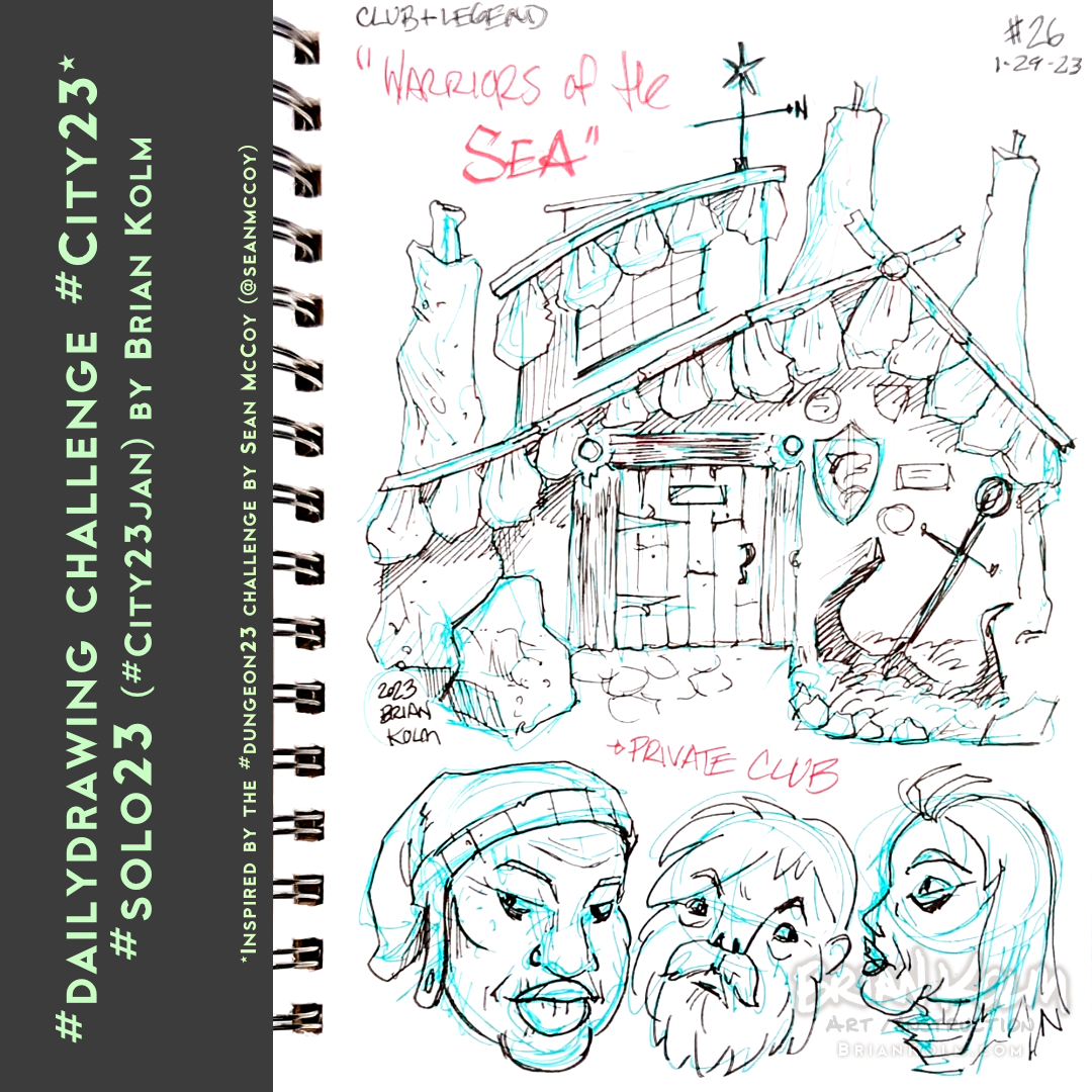 This week the #city23 worldbuilding #drawing prompt: Jan 22-28 Everyday - club + legend