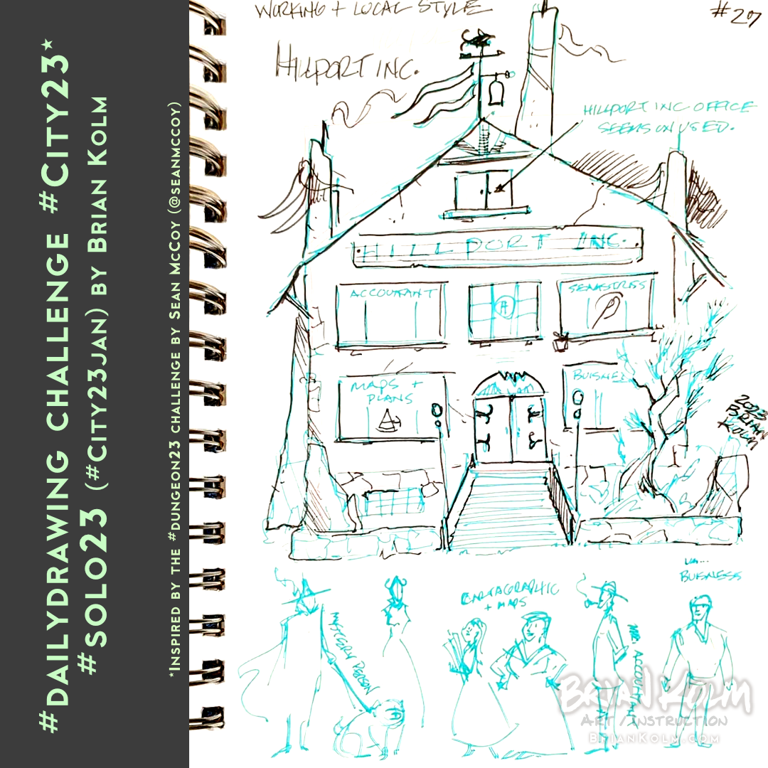 This week the #city23 worldbuilding #drawing prompt: Jan 22-28 Everyday - working + local style