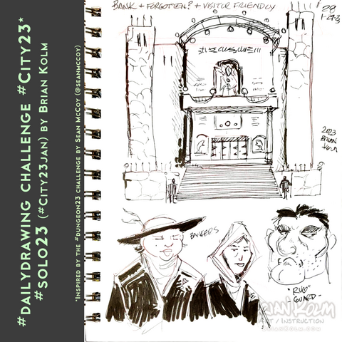 This week the #city23 worldbuilding #drawing prompt: Jan 22-28 Everyday - bank + forgotten + visitor friendly