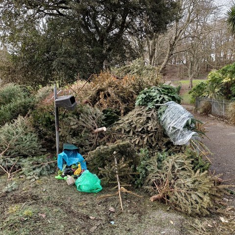 Xmas trees left for recycling at the South Drive entrance to #QueensPark are obstructing the path to #RoyalSpaNursery. The dog poo bin is also damaged. I've just reported it to @BrightonHoveCC@twitter.com #CityClean using @fixmystreet@twitter.com https://www.fixmystreet.com/report/4180714