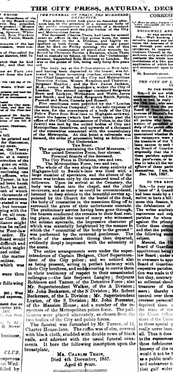 Remembering Det Sergeant Charles Thain @CityPoliceCops@twitter.com, murdered on 4 December 1857 by a prisoner he was escorting back from Germany. Thain had also served with @metpoliceuk@twitter.com and at his funeral were around 1000 officers from both forces #policefamily #Cityhistory @MPSHeritage@twitter.com