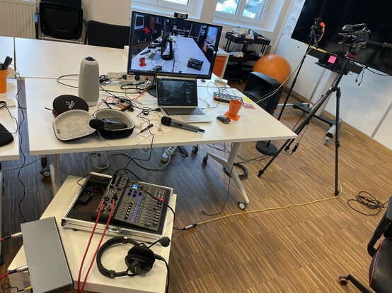 Am Freitag beim #ckj42 kommt ein erster Prototyp des DIY-Hybrid-Setup der #loscon23 zum Einsatz. Prototyp des Prototyps ist aufgebaut 😎 https://community.cogneon.de/t/42-knowledgejam-lego-serious-play-bei-veranstaltungen-nutzen-ckj42/3859