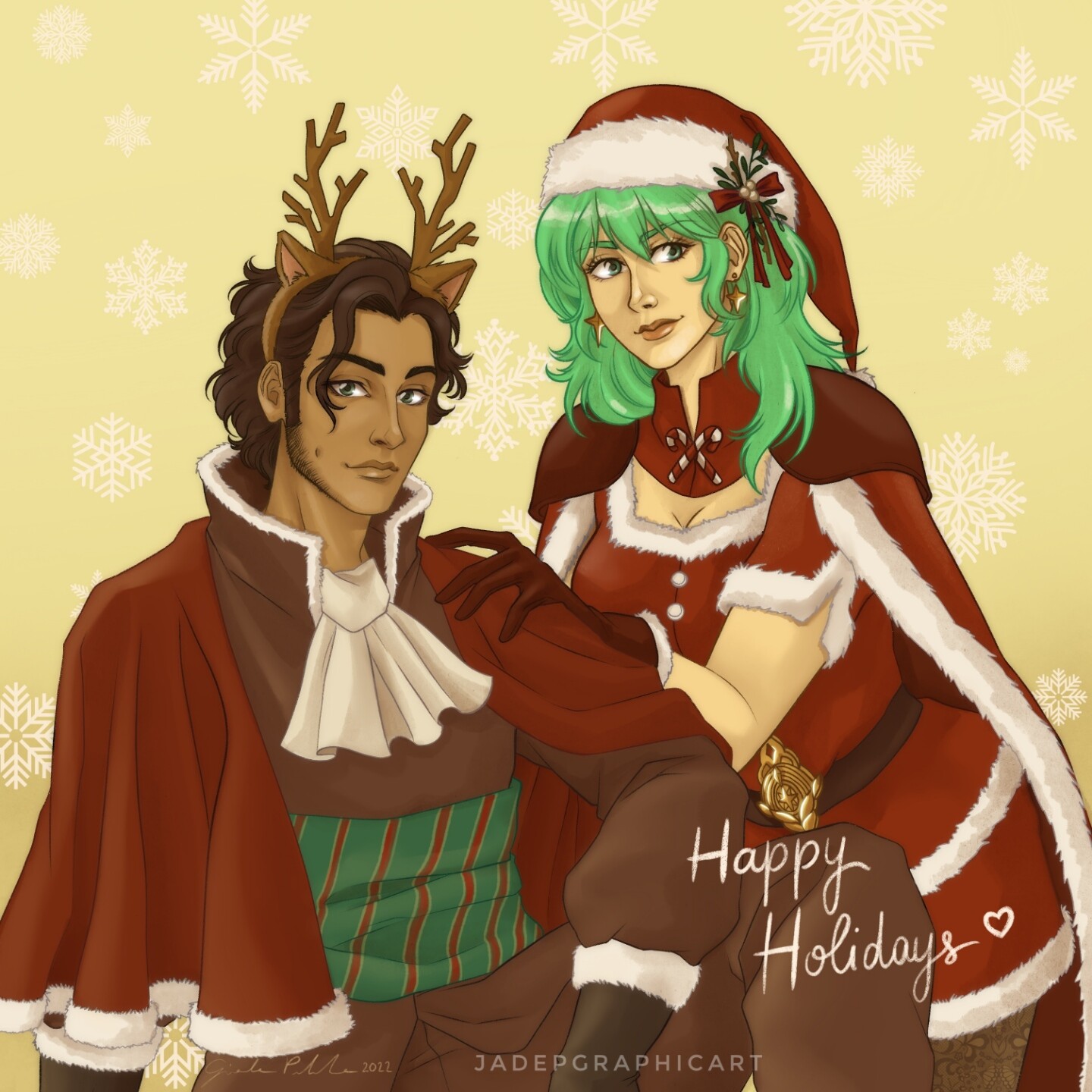 Happy Holidays y'all โจ I remade the same drawing I made last year, featuring Byleth and Claude from Fire Emblem Three Houses ๐ฆ๐ I hope you'll like it!