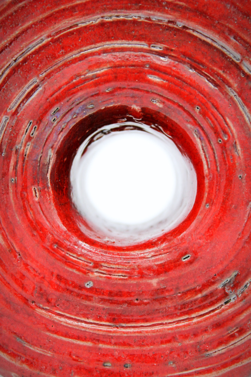 #art #pottery #MastoArt #red #raku #vase #donutvase #MastoArtist #FediArt #claycommunity #ArtMatters