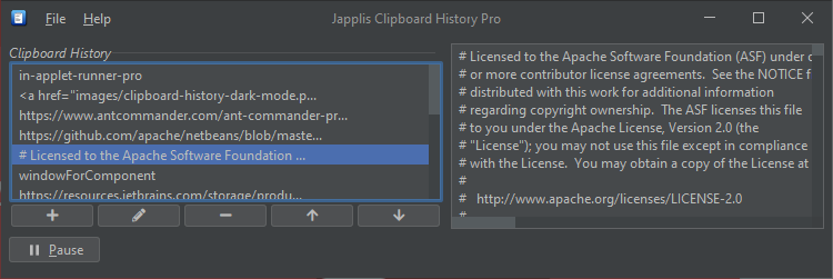 🆕I've just released Japplis Clipboard History 🆓 and Japplis Clipboard History Pro 1.0ß. It records text copied to the clipboard to be able to re-use it later. It can work also as plugin for most of the Java IDE using Applet Runner.