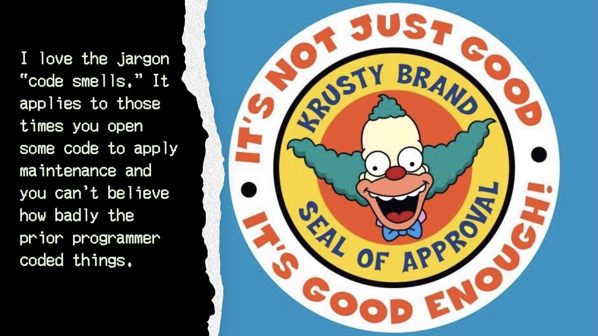 Referenced link: https://hackernoon.com/how-to-find-the-stinky-parts-of-your-code-part-xxvii