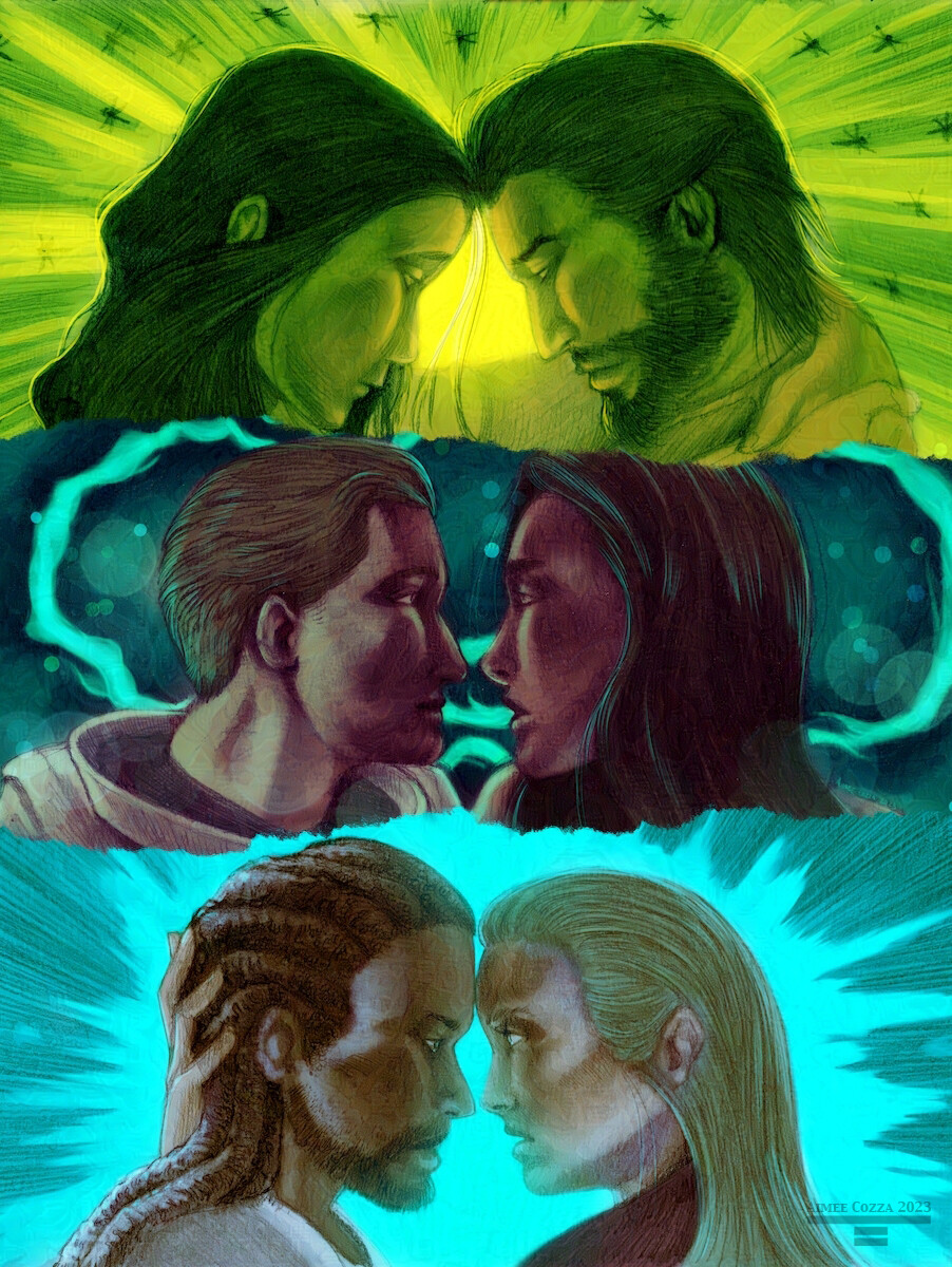 The Lovers card for the Cards of the Fence major arcana Coheed & Cambria fan tarot deck. Thank you to Nyx Naia Stock and @AdorkaStock for the pose references!