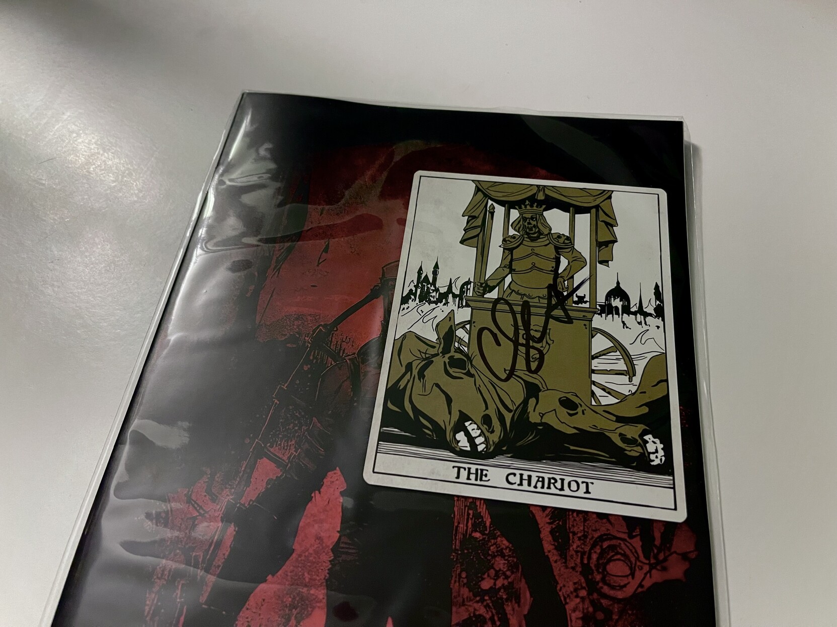 Issue 1/6 of My Brother’s Blood Machine has arrived with a tarot card signed by #ClaudioSanchez himself.