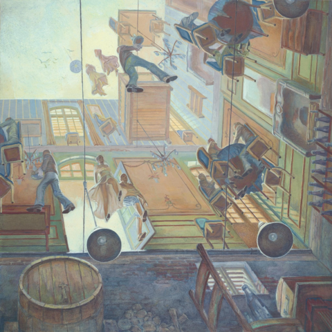 First painting I've tried on canvas in this new sketchbook style, really hard to keep it simple and not go for cross hatching overkill #painting #comicart #art #sketchbook