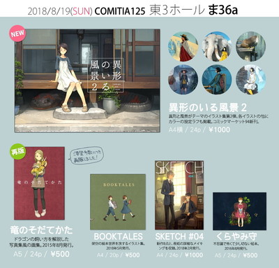 【コミティア125】ま36a にて夏コミ新刊「異形のいる風景2」と、再販した「竜のそだてかた」及び既刊数点を頒布します。よろしくお願いします。 #COMITIA125