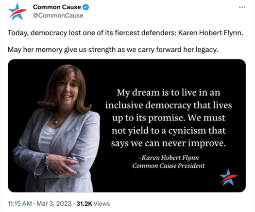 She just helped me out just few weeks ago on a project I had been working on. Sending light and love to her family, the #CommonCause team and community.