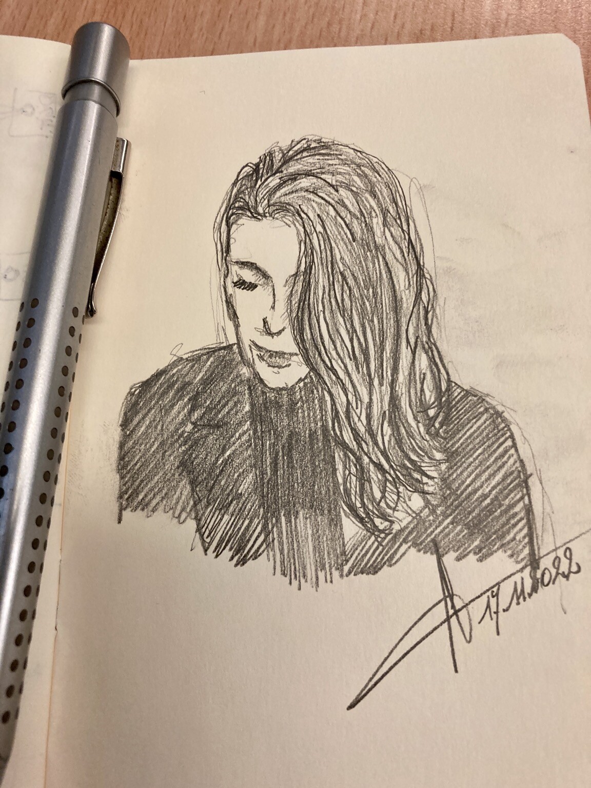 She smiled when she saw that I was drawing her.
