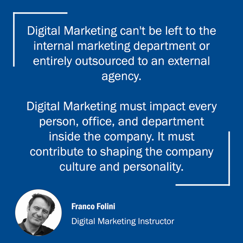 Digital Marketing must impact every person, office, and department inside the company. It must contribute to shaping the company culture and personality.