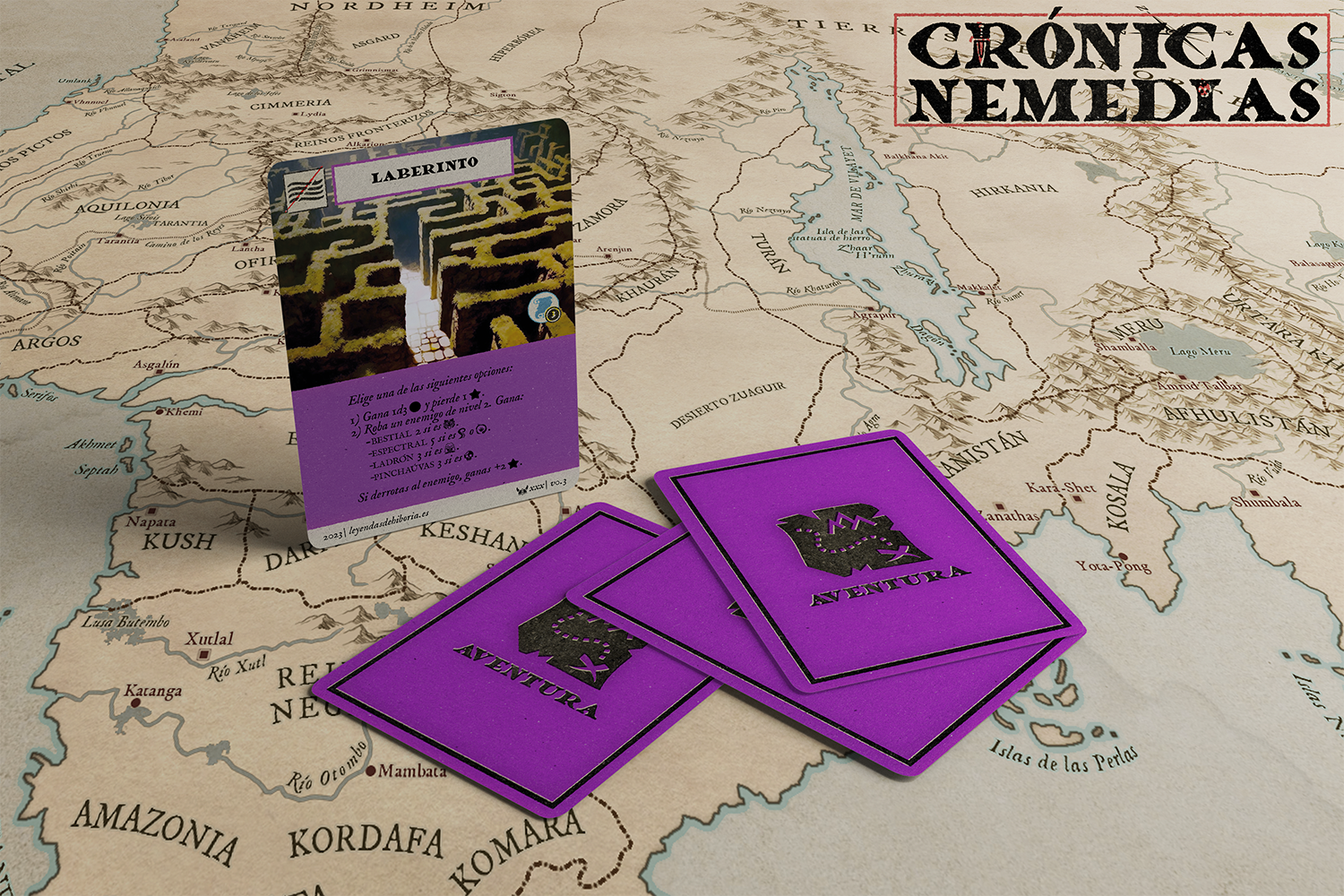 Las cartas de aventura del juego Crónicas Nemedias quedan tal que así.