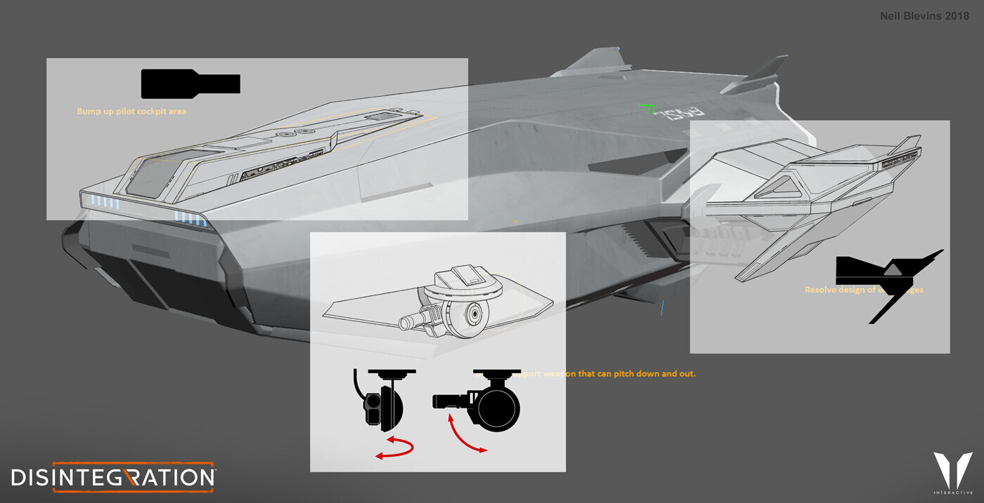 Designs for an outlaw gunship from Disintegration. Everything from silhouette sketches to draw overs of the final craft #gamedev #conceptdesign #conceptart #scifi