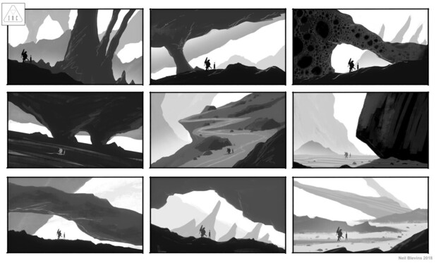 This #throwbackthursday Environment Thumbnails! It's so easy to go too far with these, and just keep detailing, but I try my best to keep them rough so people can 100% focus on the big shapes while still getting enough detail to see scale. #conceptart #conceptdesign #sketch