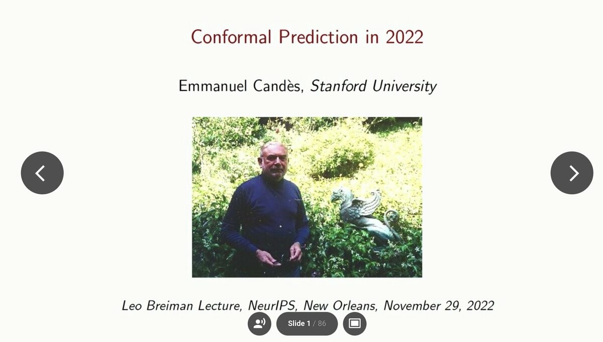 The Key Invited talk by Prof Emmanuel Candes (Stanford) on “Conformal Prediction in 2022” it is now available online to watch.