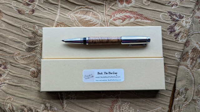 A new fountain pen from Brad the Pen Guy, purchased at ConFusion 2023. It writes beautifully! If only my own handwriting were its equal.