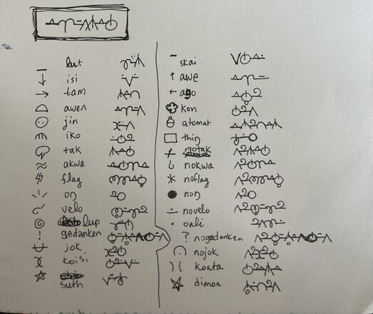 I started working on a #conscript for my N'tòsi #conlang! It's hard to really see because this little notebook I have has lines that are too dark, but I like the simplicity and the fact that you can build any syllable you need rather than needing to memorize separate characters for each syllable.