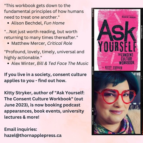 I would really like to go on some book podcasts to talk about how I center #consentculture in collaborative projects like anthologies as a run up to the launch of "Ask Yourself: The Consent Culture Workbook"! Any recommendations? #BookTwitter