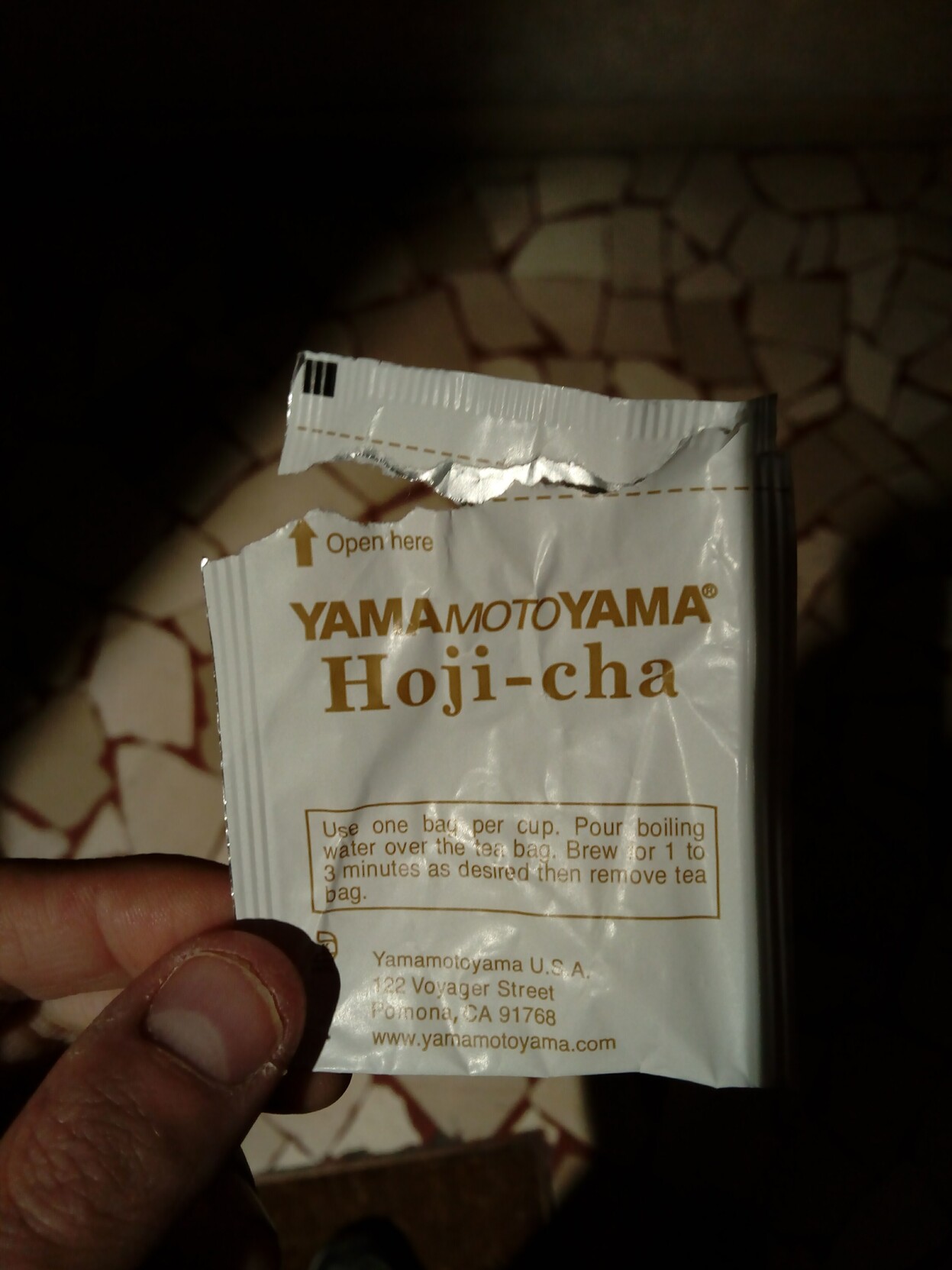 Mi hanno offerto questo tè buonissimo che non conoscevo chiamato hoji-cha, che da Wikipedia pare essere tè verde giapponese tostato.